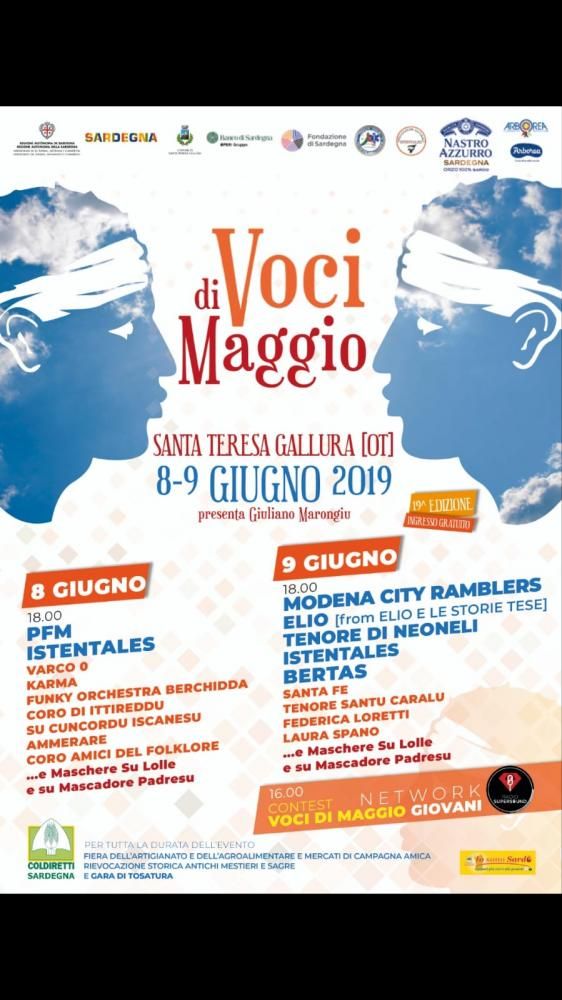 Tra folclore e gastronomia, a Santa Teresa di Gallura prende vita un suggestivo festival della canzone. Voci di Maggio, l’evento di musica, tradizione, moda e gastronomia più atteso della Sardegna, arriva l’8 e il 9 giugno nella splendida cittadina in provincia di Olbia-Tempio. Grazie alla manifestazione nata 19 anni fa grazie all’intuito dell’Associazione Culturale “Istentales” - che ha riunito gli artisti più rappresentativi del panorama artistico isolano e nazionale e che è poi diventata itinerante - andrà in scena per due giorni una grande festa popolare che svelerà il lato più autentico dell’isola: migliaia di visitatori affolleranno Santa Teresa di Gallura seguendo un ricco programma che spazia dall’artigianato alla rievocazione di antichi mestieri, dalle sagre alla gara di tosatura, e che ruoterà intorno a due grandi appuntamenti musicali a ingresso gratuito, presentati da Giuliano Marongiu.