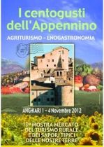 Dal 1° al 4 Novembre 2012 il centro storico di Anghiari (AR) apre le porte all’atteso appuntamento autunnale de “I Centogusti dell’Appennino”, quest’anno arrivato alla XIII edizione. Si tratta della mostra-mercato che Anghiari dedica al mondo dell’agriturismo e dell’enogastronomia, allo scopo di valorizzare le produzioni agroalimentari della Valtiberina e rivolto esclusivamente ai prodotti di qualità. Ogni anno partecipano circa 50 aziende, le quali allestiscono i propri spazi all’interno dei fondi del centro storico, unendo così la caratterizzazione delle botteghe alla tipicità dei sapori. I produttori hanno la possibilità di promuovere i frutti del loro lavoro con assaggi e degustazioni: formaggi, salumi, ortaggi, farine, olio, vino, miele, funghi, tartufi, conserve, marmellate e molto di più. La mostra, offre ai visitatori e agli addetti ai lavori un'occasione di incontro e di approfondimento sul variegato mondo del turismo rurale e dei sapori delle nostre terre, favorendo la filiera corta e la conoscenza reciproca delle parti, nella speranza di creare un rapporto duraturo. A garanzia della qualità dei prodotti esposti è la presenza delle aziende socie della Strada dei Sapori Valtiberina Toscana, che riunisce oltre novanta realtà del territorio tra comuni, enti, aziende agricole, strutture turistico - ricettive, artigiani e commercianti.