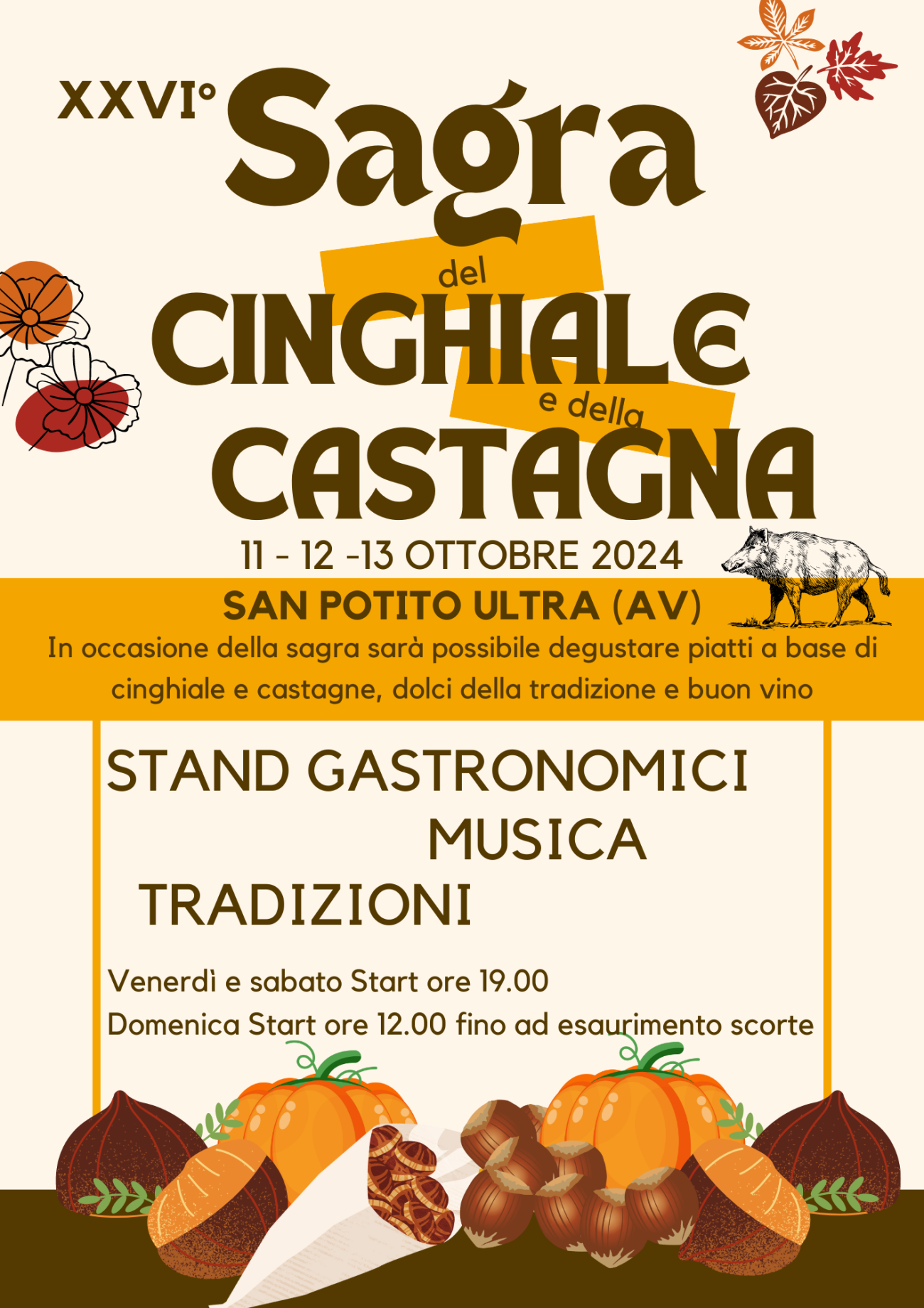 La tradizione si rinnova presso San Potito Ultra (AV), la Sagra del Cinghiale e della Castagna è arrivata ormai alla sua XXVI° edizione.