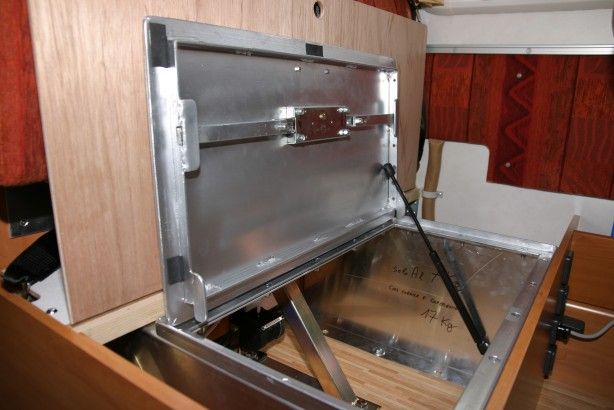 Il portello è realizzato con una cornice di L di ferro avvitata sopra alla cassa di alluminio e da
