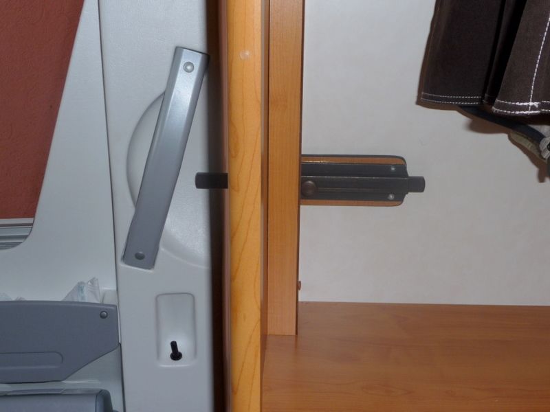 Per le portiere della cabina ho comperato appositi chiavistelli della Heosafe e ho praticato un intaglio in corrispondenza del telaio delle portiere!!