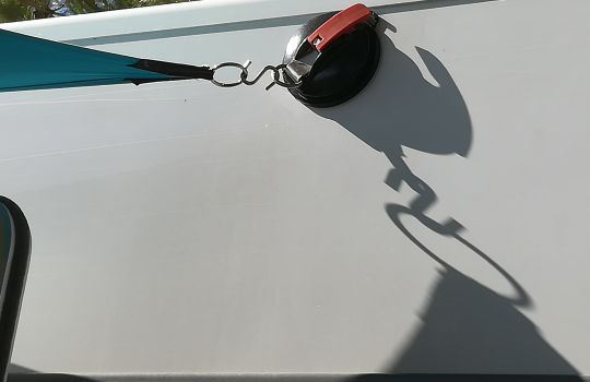 Tendalino facile da realizzare e da montare, leggero e, soprattutto, economico. Occorrono solo due ventose da 10Kg di tenuta, un telino di cotone, due paletti con relativi tirantini e 4 picchetti.La foto spiega il resto.