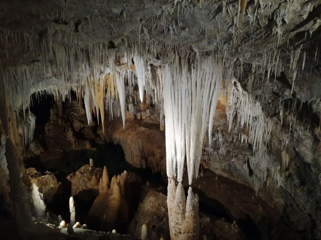 Ricchissime le concrezioni di ogni forma: dalle cannule, esili e quasi trasparenti, ai drappi, sottili come lenzuoli, alle grandi colonne che sembrano sostenere la volta fino alle stalattiti eccentriche, che sfidano la forza di gravità sviluppandosi in tutte le direzioni.