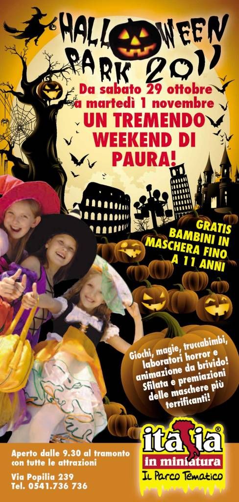 Un lunghissimo weekend di paura dal 29 ottobre 1 novembre nel parco tematico: giochi e novità tra zucche, streghe, zombie, spaventapasseri e scienziati pazzi. Ingresso gratuito per i bimbi in maschera (graditi anche i “grandi” vestiti a tema)!