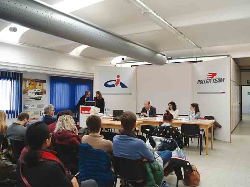 In seguito il team ha realizzato un’approfondita visita nel polo industriale del gruppo dove circa 300 dipendenti portano avanti una produzione media giornaliera di circa 15 veicoli. Il ciclo di lavorazione è tra i più completi, producendo direttamente semilavorati, pavimenti, fiancate, testate e mobilio. Insomma, sia le scocche che gli arredi dei veicoli ricreazionali. Per i futuri architetti che stanno seguendo il Corso di Laurea Magistrale in Design del prodotto e dell’evento con il docente architetto Massimo Musio-Sale (presente alla visita aziendale insieme all’assistente Giulia Zappia) è stato un incontro basilare; di sicura utilità per portare avanti il lavoro svolto alla definizione di nuove soluzioni da proporre su varie tipologie di camper. All’incontro erano presenti gli architetti Letizia Bruni (design stile e interni CI e Roller Team), Barbara Faggi (design stile e interni Elnagh e McLouis) e Fabio Contillo (design stile e interni Arca e Mobilvetta) che hanno instaurato un costruttivo confronto e una discussione tra studenti e azienda sulle diverse forme di collaborazione o di collocazione del designer all’interno dei processi di progettazione e produzione, la sua integrazione nell’organizzazione e nelle competenze aziendali, le aspettative e le richieste dei settori progettazione e produzione, il contributo del design all’innovazione e alla crescita delle aziende.
