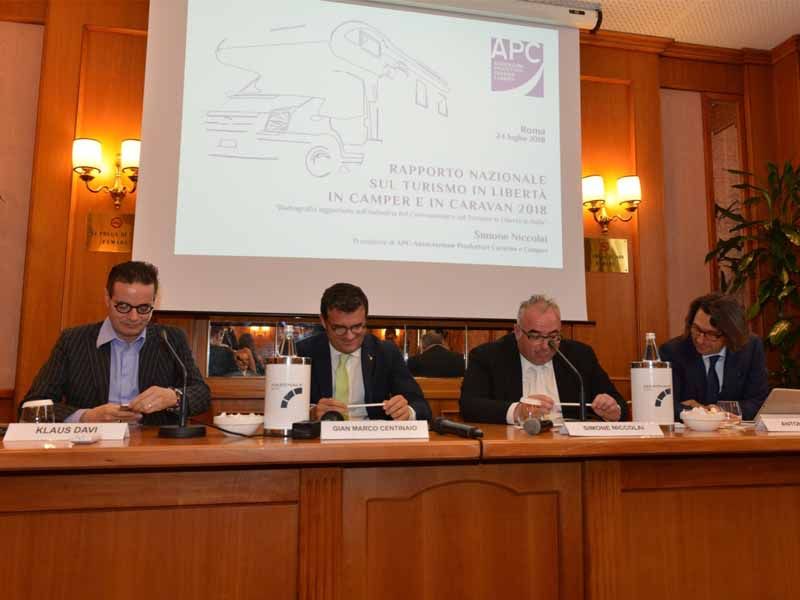 I dati sono stati illustrati oggi martedì 24 luglio 2018 da APC - Associazione Produttori Caravan e Camper nel corso della presentazione della VII edizione del Rapporto Nazionale sul Turismo in Libertà in Camper e in Caravan, documento di fondamentale valenza per tutti gli operatori del settore camperistico e della filiera del Turismo in Libertà in Italia, alla presenza di Gian Marco Centinaio (Ministro delle Politiche Agricole e del Turismo) e di Antonio Cellie (AD Fiere di Parma).
