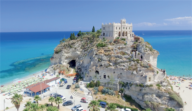 Tropea è subito riconoscibile per la sua posizione e per il grande promontorio che divide la costa in due golfi, sulla cui cima sorge il Santuario di Santa Maria dell’Isola, luogo di culto di origine medievale e perfetto punto panoramico: una scalinata vi condurrà su una piattaforma naturale dalla quale potrete scorgere in lontananza le isole Eolie e le vette innevate e fiammanti dell’Etna.