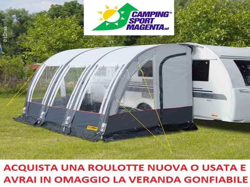 Camping Sport Magenta annuncia per sabato 16 e domenica 17 giugno i Caravan Days, due giornate dedicate alle roulotte. Chi ne acquisterà una nuova o usata, infatti, avrà una veranda gonfiabile in omaggio. Questa è una delle tante iniziative che ogni mese vengono organizzate dalla concessionaria di Magenta, rivenditrice dei marchi Caravelair, Hymer, Challenger, Eriba, McLouis, Mobilvetta.
