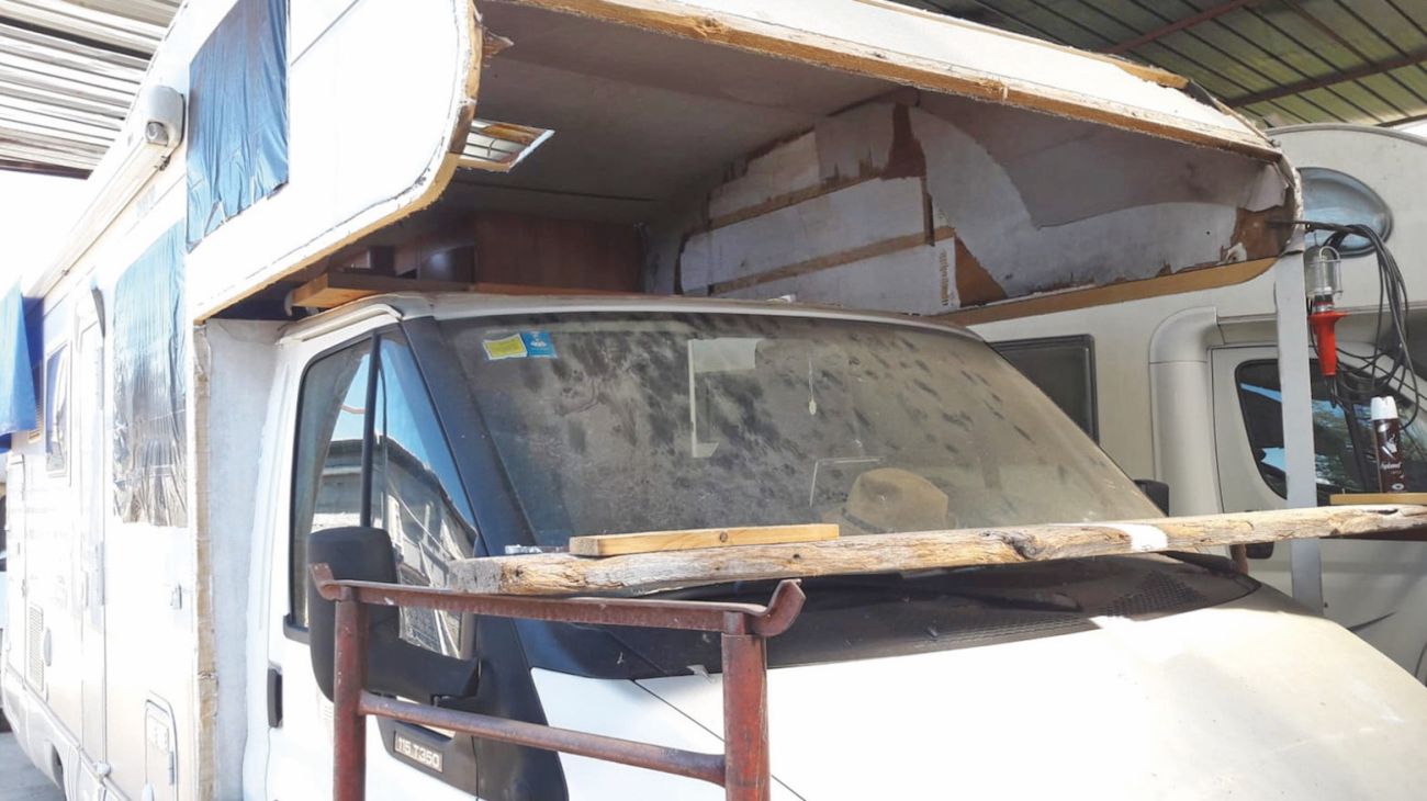 La situazione del camper una volta smontate le parti per valutare il danno e cominciare il lavoro