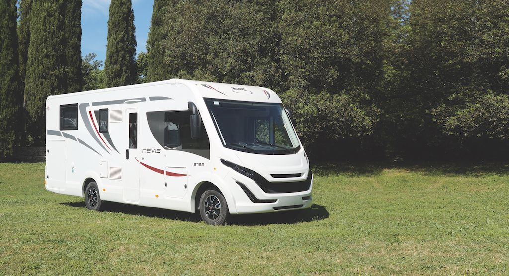 Gli aggiornamenti comuni alla gamma hanno riguardato il nuovo frontale per i motorhome Nevis, i fari posteriori a led, le nuove bandelle con sportello apribile e gavone. Passando invece agli interni, si nota un grande cambiamento degli arredi, molto più ricercati con pensili bicolore con finitura lucida, nuove tappezzerie, nuovo design del pannello sotto letto basculante. Una menzione a parte la merita il tavolo, ora con bordo in legno e liner cromato, oltre che con gamba di design dotata di illuminazione a Led, molto suggestiva.