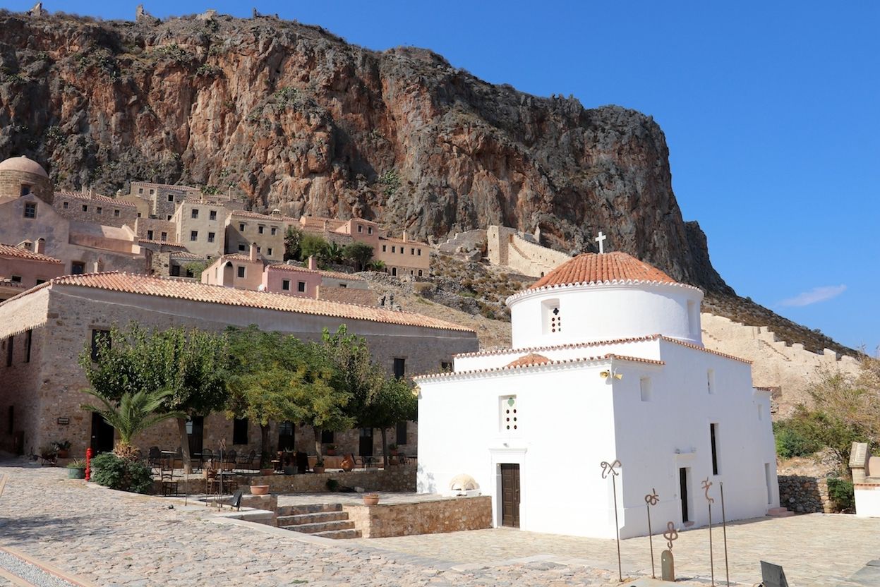 Monemvasia o Malvasia? Questo è il dilemma. I veneziani la chiamarono Malvasia, esattamente come il famoso vino che guarda caso è nato proprio qui, mentre per i greci è Monemvasia. Ad ogni modo, con qualsiasi nome la si chiami, questa cittadina fondata nel VI secolo d.C. è splendida. La parte medievale si raggiunge dalla porta principale del Kastro e, appena varcata, ci si trova in un mondo a parte. La strada principale è fiancheggiata da edifici curatissimi, trasformati in lussuose gioiellerie, gallerie d’arte, bar, ristoranti e negozi di souvenir. È però sufficiente scostarsi dalla via principale per trovare un mondo completamente differente, in cui oleandri e bouganville colonizzano le rovine delle antiche case che, anno dopo anno, vengono restaurate e riportate all’antico splendore. Chi scrive vi ritorna sovente ed ogni volta la ritrova sempre più bella e sempre più ricca di restauri. Sia che si percorrano i camminamenti di ronda che si affacciano su di un mare blu cobalto o che si visiti la chiesa bizantina del XII secolo con la sua preziosa iconostasi o che si salga alla fortezza e alla chiesa di Agia Sofia, Monemvasia non delude mai. Certo, è sempre affollata di turisti, ma questo è un piccolo prezzo da pagare in confronto a ciò che essa offre.