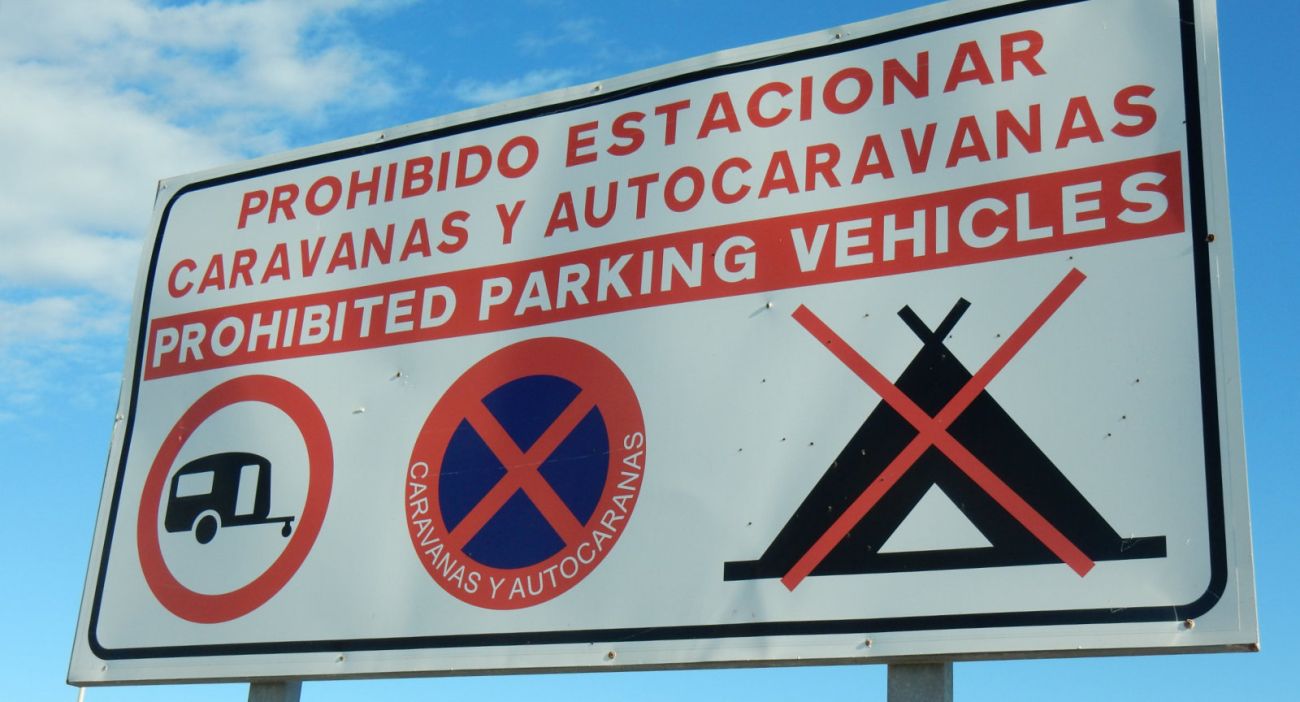 Nella foto d'archivio una segnalatica di divieto camper in Spagna