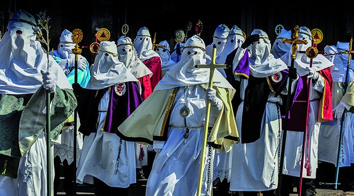La coreografia è tanto spettacolare quanto rigorosa: i dettagli delle tuniche, gli argenti nelle fibbie dei calzari, l’oro zecchino sui fercoli finemente scolpiti, le mantelle candide dei confrati. Tutto, come una macchina del tempo, ci riporta ai quei giorni di duemila anni fa quando il Cristo risorse.