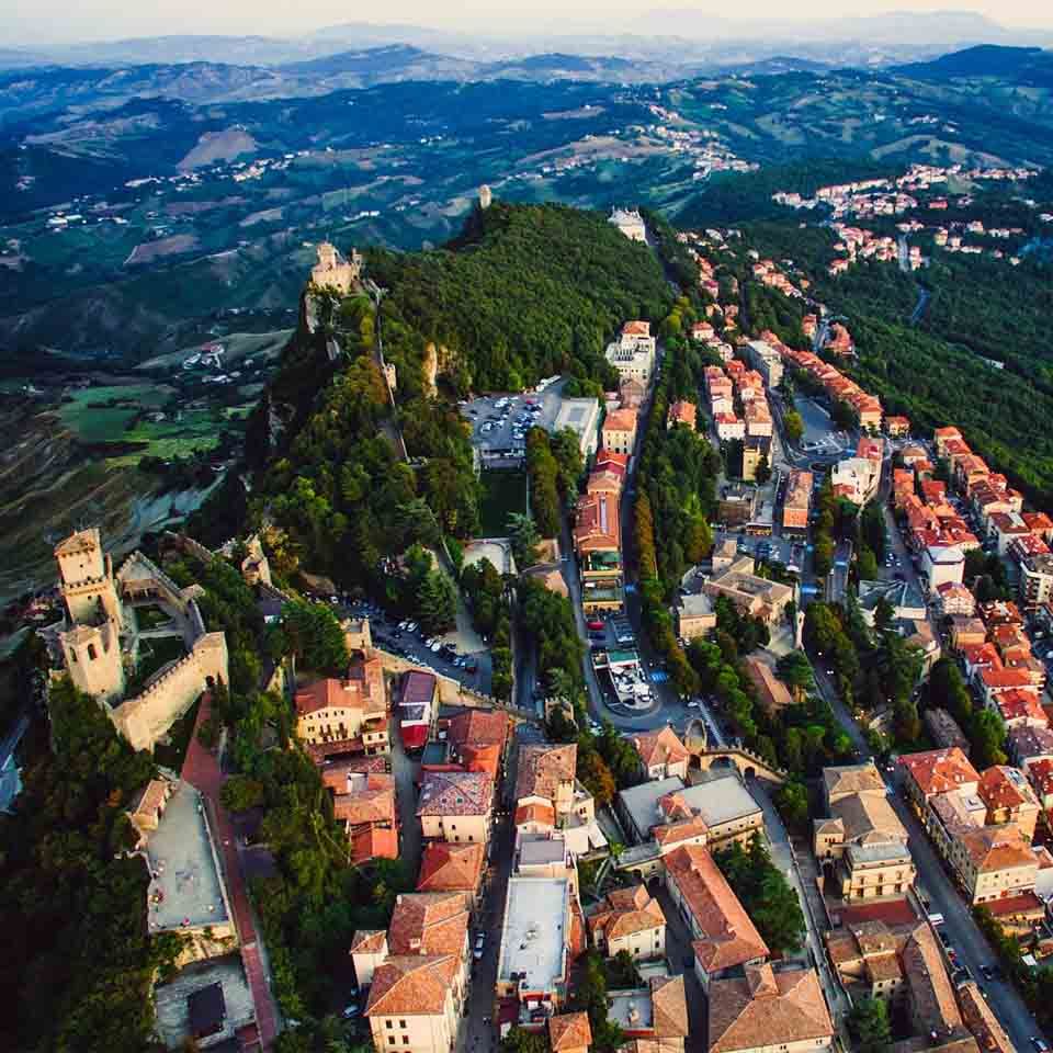 medievale che percorre strade e vicoli. Il nostro viaggio parte dall’antica Repubblica di San Marino, il cui suolo è suddiviso in 9 distretti (equivalenti alle province italiane) detti Castelli: porzioni di territorio alle quali vengono riconosciute autonomie amministrative. La capitale della Repubblica è ovviamente Città di San Marino, nota per il borgo arroccato in cima al Monte Titano. La città così come il monte sono stati dichiarati Patrimonio dell’Umanità dall’Unesco nel 2008. San Marino è il nucleo residenziale più antico e per questo raccoglie le sedi istituzionali del Consiglio Grande e Generale, del Governo (Palazzo Pubblico) e delle segreterie di Stato. Inoltre il borgo, accessibile da quattro “porte”, racchiude i monumenti e i luoghi di interesse più importanti del Titano.