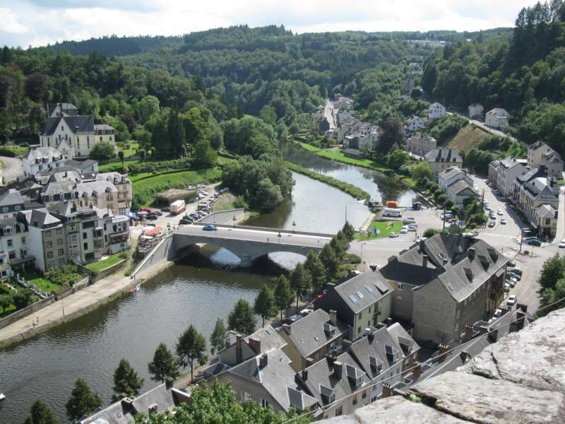 Di buon’ora ci rimettiamo in marcia, sotto un cielo incerto, e per strade secondarie sconfiniamo in Belgio. Il paesaggio che ci accoglie è di foreste e prati erbosi dove ruminano grasse vacche. Il primo paese che incontriamo sulla nostra strada è Piedmont; una sola via su cui si affacciano case unifamiliari e fattorie. In breve raggiungiamo l’abbazia di Orval. Paghiamo per entrare a visitare i resti della vecchia abbazia - distrutta durante la Rivoluzione – mentre la nuova non è visitabile perché abitata da dodici monaci. Un lungo percorso attraverso i ruderi, aiutati solo da qualche scritta in inglese, ci farà apprezzare il posto, molto interessante. Uscendo, acquistiamo la famosa birra dei frati, prodotta nello stabilimento laico a fianco del convento con l’acqua della sorgente e secondo antiche regole (davvero eccellente) e del formaggio locale (niente di eccezionale). A mezzogiorno siamo a Florenville, una piacevole sorpresa. Pranziamo in un parcheggio dietro la via principale, poi visitiamo il paese; ci scappa pure una puntata al reclamizzato negozio di Eduard (uno dei dieci maestri cioccolatieri del Belgio) per un costoso acquisto di cioccolatini da riportare in Italia ai nipotini. Proseguiamo sulla scorrevole N83 sino a Bouillon.