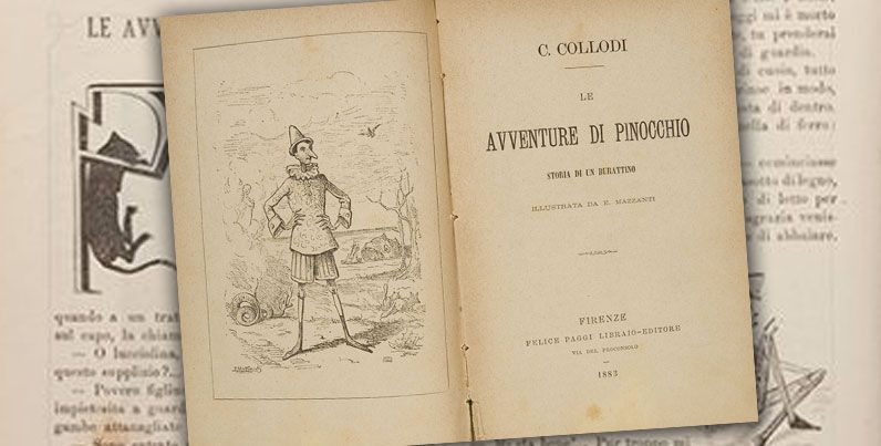 Scopri la prima pubblicazione del romanzo “Le Avventure di Pinocchio”, il libro non religioso più diffuso al mondo è conservato nella più grande raccolta su Carlo Lorenzini/Collodi ed è disponibile gratuitamente, in versione digitale e in diverse lingue, sul sito pinocchio.it. Diventa ambasciatore ufficiale dell’opera iscrivendoti al Club degli Insegnanti Corrispondenti e firmando la petizione per riportare Pinocchio tra i banchi di scuola.