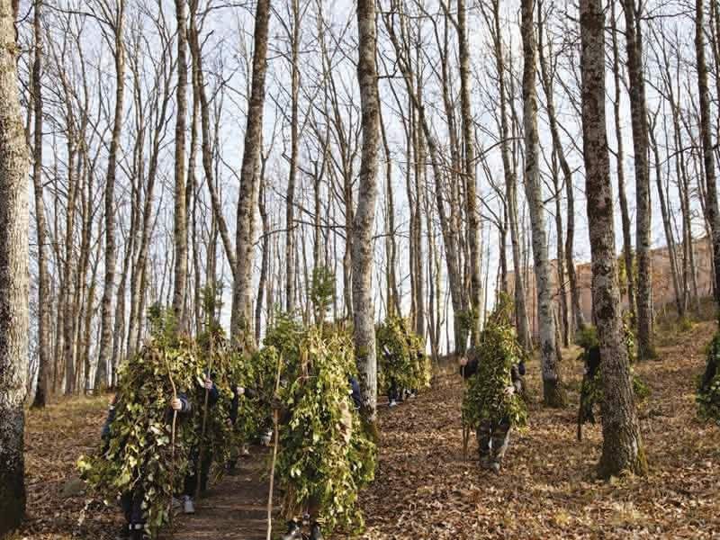 le persone si vestono di natura, diventano uomini-albero, si ricoprono di edera e si trasformano in Rumit, ovvero in eremiti. Si tratta di una maschera tipica protagonista di uno dei pochi riti arborei della Basilicata sopravvissuto