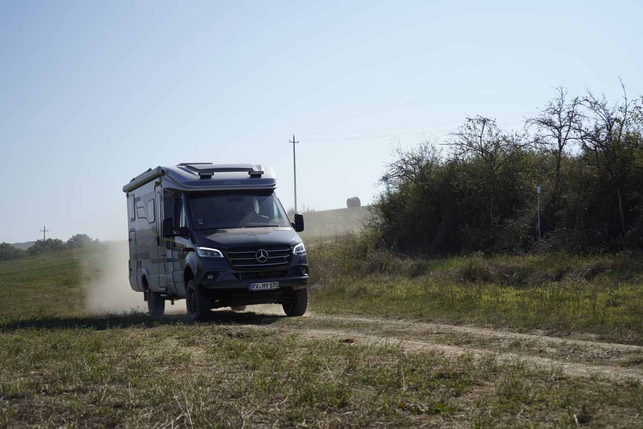 Un evento unico in Italia quello proposto da Hymer nella splendida cornice delle crete senesi. Per il secondo anno consecutivo è stato possibile per tutti gli appassionati prenotare ed effettuare un test drive totalmente gratuito di alcuni modelli del catalogo sia in pista che su uno speciale circuito sterrato ideato per mettere alla prova i modelli 4x4. Potersi mettere al volante di veicoli esclusivi come l'Hymer Venture S 4x4, da quest'anno entrato in produzione, o del prestigioso motorhome B 580 ha rappresentato il sicuro interesse dei numerosi partecipanti all'evento. Nel mondo auto i test drive sono molto diffusi, specie nella fase precedente all'acquisto, mentre, nel mondo camper sono una vera rarità se non in fase di noleggio. Il camper viene per lo più delle volte acquistato senza fare prove su strada, senza sapere come ci si troverà alla guida. Questo rende l'Hymer The Event l'unico evento in Italia che offre la possibilità a futuri clienti o a semplici appassionati di poter guidare un mezzo della propria gamma. Mettersi alla guida di un camper ci permette di capire le dimensioni, l'agilità, la risposta del motore e il comportamento dinamico su strada. In genere poi con il veicolo scelto si percorreranno migliaia di chilometri ed è dunque fondamentale che sia di nostro gradimento in fase di guida. Ed è proprio su questo che punta Hymer, sull'esperienza diretta dei camperisti per far conoscere i propri mezzi non solo in vetrina ma anche su strada. Il vero fiore all'occhiello dell'evento è stato rappresentato dalla possibilità di testare i veicoli della nutrita gamma 4x4 proposta da Hymer su Mercedes-Benz Sprinter. Veicoli esclusivi come il Venture S 4x4, l'ML-T 570 Crossover e il furgonato Gran Canyon S Crossover sono stati a disposizione del pubblico per una prova su un circuito sterrato con pendenze e deformazioni stradali adrenaliniche per poter testare al massimo le qualità della trazione 4x4 e vivere un momento offroad unico.