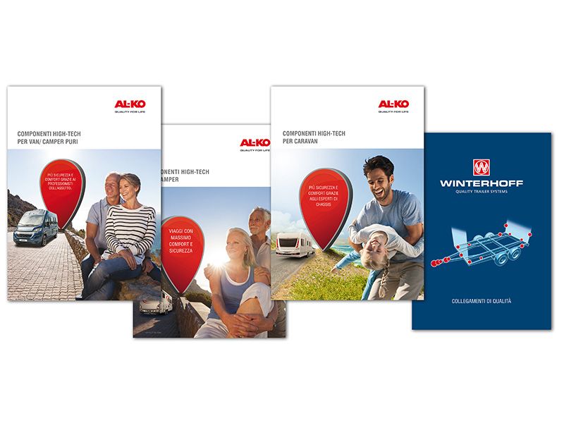 Realizzati su carta patinata e tutti nello stesso, grande, formato, i nuovi cataloghi presentano la vasta gamma di prodotti Al-Ko sia per l’aftermarket sia per il primo impianto, in modo chiaro e dettagliato. Vengono integrati nei nuovi fascicoli dedicati ai camper i cataloghi dei portatutto Sawiko, del telaio AMC, dei sistemi di sospensione Air Top e dei ganci traino per camper. Il catalogo per caravan, parimenti, contiene tutti i prodotti che riguardano il rimorchio abitabile, compresa la sezione dedicata ai telai e quella dedicata agli accessori per la sicurezza in marcia. Anche sul catalogo dei furgonati vengono proposti i prodotti Sawiko e i ganci traino specificatamente dedicati a questa tipologia di veicolo. Ai tre cataloghi si affianca poi anche quello di Winterhoff, marchio acquisito da DexKo Group nel 2016 e produttore di ruotini, piedini, giunti a sfera, cerniere, chiusure cassoni e altri componenti per rimorchi, che completa così la gamma di Al-Ko.
