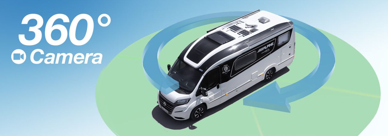 I sistemi di telecamere a 360° erano un'esclusiva dei più recenti veicoli passeggeri di fascia alta, ma ora sono disponibili anche per camper e furgoni per un'installazione universale. Il nuovissimo sistema di telecamere Alpine HCS-T100 offre la massima visione d'insieme, visibilità e sicurezza e può essere installato praticamente in qualsiasi camper. 4 telecamere HD poste nella parte anteriore, laterale e posteriore del veicolo consentono all'unità di controllo di generare un'immagine completa a 360° dell'ambiente circostante il veicolo.
