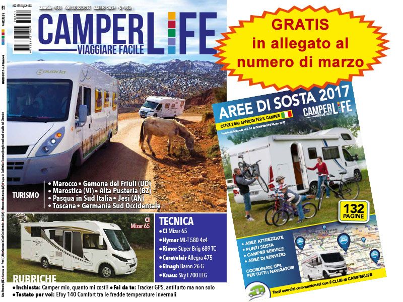 A marzo CamperLife arriva in edicola con un’interessante novità. Per la prima volta IN REGALO troverete allegata al numero la nuova edizione della sempre apprezzata Guida alle Aree di Sosta in Italia che avrà anche una nuova veste grafica.