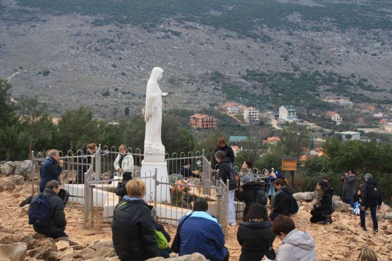La Chiesa di San Giacomo dove si svolgono messe in numerose lingue. È la principale attrazione della città al cui esterno si erge la statua della Madonna della Pace. La partecipazione a una delle messe è pressoché d’obbligo. Il Monte Podbrdo è il luogo dove si sono verificate le prime apparizioni mariane. I veggenti hanno avuto le loro prime visioni della Santa Madre quando erano bambini e tuttora periodicamente vedono il suo volto o sentono la sua voce. Il Monte Krizevac propone durante la scalata una via crucis che termina con una grande croce bianca in cemento.