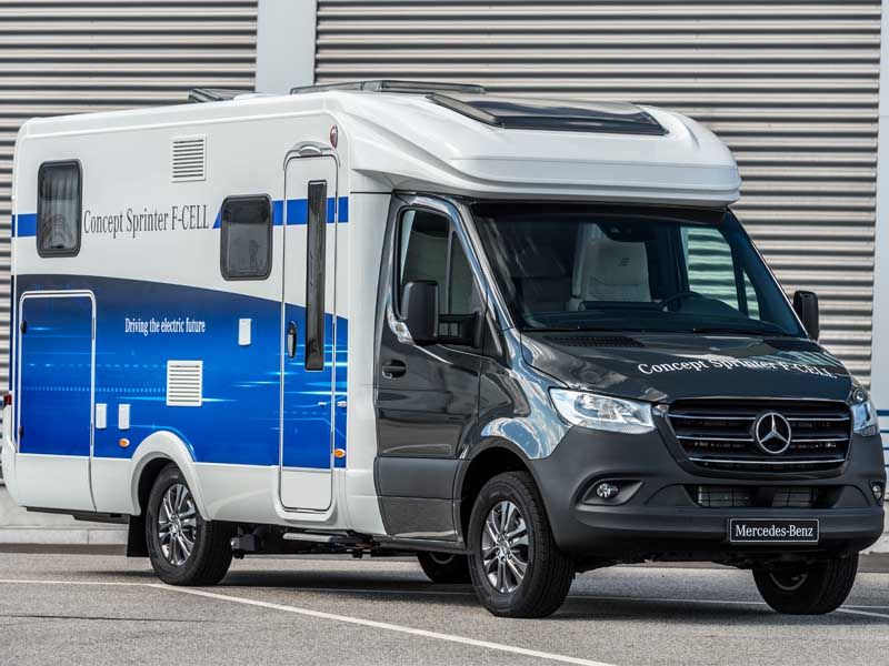 Realizzato come semintegrale, mostra, a titolo esemplificativo, tutti i vantaggi tipici dei veicoli con celle a combustibile: dall’elevata autonomia, fino alla mobilità a zero emissioni locali. Si tratta di qualità molto apprezzabili non solo nel campo dei motorhome, ma anche per l’impiego commerciale. “Nel prossimo futuro offriremo una versione a trazione elettrica per tutte le serie commerciali - afferma Volker Mornhinweg, Direttore di Mercedes-Benz Vans –“conseguentemente stiamo integrando nella nostra strategia eDrive@VANs il sistema di propulsione a celle a combustibile, che nel breve periodo offrirà grandi opportunità soprattutto sul versante delle lunghe percorrenze”. L’intelligente cooperazione di batteria e propulsione a celle a combustibile consente al Concept Sprinter F-CELL una potenza elettrica massima di circa 147 kW ed una coppia di 350 Nm. I tre serbatoi disposti nella sottostruttura del veicolo immagazzinano complessivamente 4,5 kg di idrogeno e assicurano così un’autonomia di circa 300 chilometri. Se per la specifica destinazione d’uso è richiesta un’autonomia maggiore, ai serbatoi integrati nel pianale può essere aggiunto un ulteriore serbatoio nella zona posteriore. Con questa configurazione l’autonomia sale a 500 chilometri.