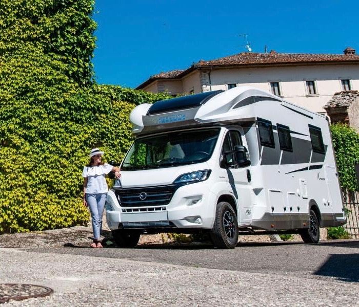 Camper semintegrale con letto nautico centrale.