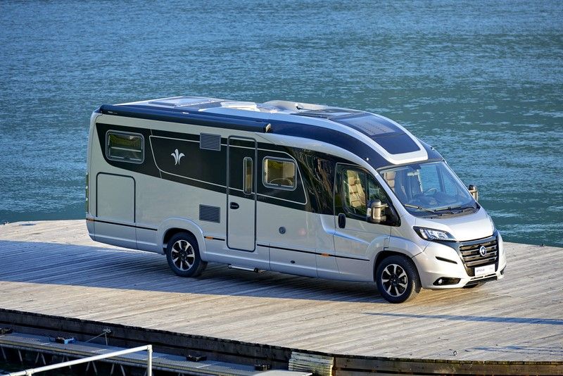 La carrozzeria in un riuscito mix tra eleganza e aggressività, amalgama elementi innovativi come lo stampo in vetroresina del cupolino panoramico o lo stile elegante della parete posteriore dove nell’emblema è occultata la retrocamera. Si entra nella parte abitativa dalla porta d’ingresso con chiusura facilitata, finestra fissa e il sottostante scalino con movimentazione elettrica. Sempre su questo lato, lo sportello del vano porta bombole, un gavone estraibile sottoscocca (opt. 614 euro) e il portellone sollevabile ad ala di gabbiano del garage, agibile sull’altro lato da uno sportello controvento di dimensioni più ridotte (opt. 498 euro). Restando sul lato guidatore, uno sportello dedicato facilita l’ispezione dell’impianto dell’acqua disposti nel doppio pavimento tecnico e l’allacciamento elettrico alla rete esterna. In opzione (1.487 euro) la veranda visibile nella foto in apertura con illuminazione a LED drimmabile.