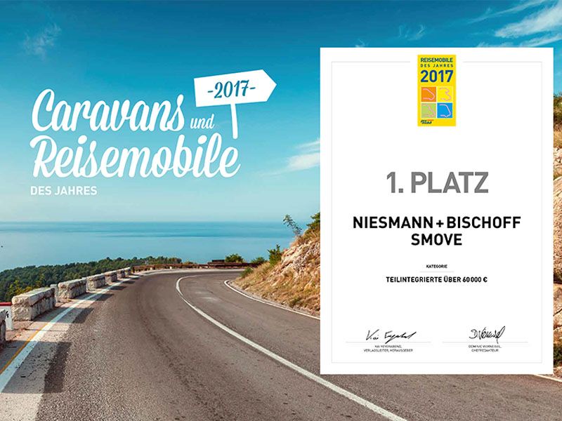 All’interno della celebre Fiera CMT di Stoccarda, il semintegrale Niesmann-Bischoff Smove è stato premiato con il primo posto dagli esigenti lettori della rivista di settore ProMobil per la categoria dei “semintegrali oltre 60.000 Euro”. Questo veicolo unico nel suo genere si è aggiudicato inoltre anche l’ European Innovation Award per la categoria “Concetto complessivo” e “Design esterno”. La Fiera ha portato al Brand altre soddisfazioni, in quanto i riconoscimenti giunti dalla celebre rivista sono stati estesi anche alla classe dei Liner, premiata per la terza volta con il primo posto, e per Arto nella categoria “Integrali oltre 80.000 Euro”, dove il marchio tedesco è stato premiato per la terza volta di seguito con il secondo posto.