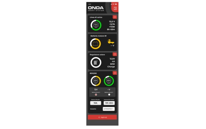 ONDA Smart System porta sullo smartphone tutti i dati dell’energia di bordo, anche su camper non recenti. Via Bluetooth mostra in tempo reale livello di carica, consumi e quanto arriva dai moduli fotovoltaici, così si pianifica l’autonomia senza andare a tentativi. L’app raccoglie in un’unica schermata informazioni da caricabatterie, pannelli solari e generatore, con widget chiari e letture immediate.