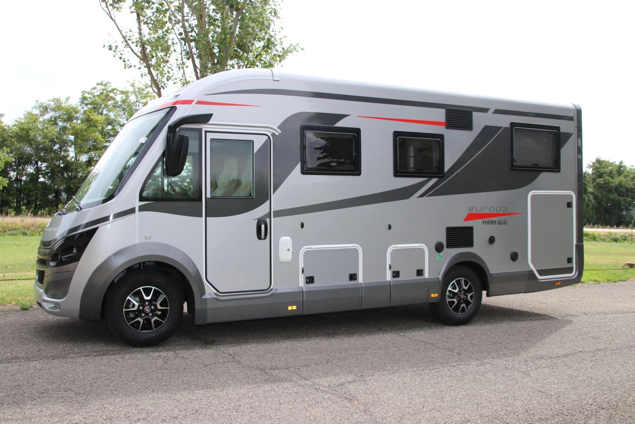 Non si tratta di un semplice restyling, ma di un mezzo tutto nuovo, internamente che esternamente: nasce la gamma H di Arca, per motorhome di alta qualità. Realizzati su telaio Al-Ko con ruote da 16” in lega di serie, grazie a questa soluzione telaistica e all’adozione standard di dispositivi come Esp,Esc,Traction +, presentano un baricentro molto basso per la migliore guidabilità e tenuta di strada, pur vantando un’importante capacità di carico e stivaggio. Il frontale, che mantiene il family feeling della versione precedente, è realizzato con tecnologia VEX a doppio guscio di vetroresina che consente di utilizzare spessori variabili e garantisce estrema rigidità strutturale della parte anteriore. La parte frontale è inoltre caratterizzata da un cristallo curvo che offre al guidatore una visibilità superiore allo standard, minimizzando angoli morti nella parte frontale e laterale. Le pareti esterne sono in alluminio metallizzato e, grazie anche alla verniciatura della parte frontale, il veicolo offre una garanzia del mantenimento del colore nel tempo e uniformità su tutta la superficie del veicolo. Confermata la struttura esterna, con pareti curve sulla parte superiore che garantiscono elevata rigidità strutturale oltre ad una estetica molto caratterizzante. Il posteriore, che riprende quello della linea P, è caratterizzato dalla struttura a colonne laterali e superiori con ampio paraurti e dispositivi luminosi full led a frecce dinamiche.