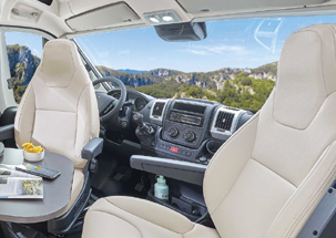 Anche le dotazioni di bordo sono all’altezza del nuovo progetto: di serie troviamo il riscaldamento Truma Combi Diesel completo di kit altitudine e comando CP Plus per un utilizzo senza problemi anche in pieno inverno o in montagna; ancora, è dotato di frigorifero a compressore che rende così minimo l’utilizzo di gas a bordo. La bombola ha una capienza di 2,75 kg, quanto basta per alimentare i fornelli della cucina. Bello ed elegante anche il mobilio Natural in legno chiaro ed inserti bianchi e la tappezzeria Arizona. I posti letto totali sono tre, due nel grande matrimoniale posteriore da 190x 140 cm e uno ricavabile dalla trasformazione della dinette. Solo sul nuovo D51 sarà disponibile il Pack Guardian, dotazione aggiuntiva che comprende numerosi elementi pensati per incrementare la sicurezza alla guida: tra questi, l’avviso di superamento carreggiata con frenata automatica di emergenza, l’assistente al mantenimento della corsia, utile in caso di sonnolenza e i sistemi di avviso anticollisione e rilevamento dei pedoni che proteggono in caso di situazioni improvvise; sono offerti anche il cruise control, i sensori di parcheggio anteriori e posteriori, l’accensione automatica dei fari e dei tergicristalli e il parabrezza riscaldato, tutta dotazione compresa nel Pack dedicato alla motorizzazione Ford Transit.