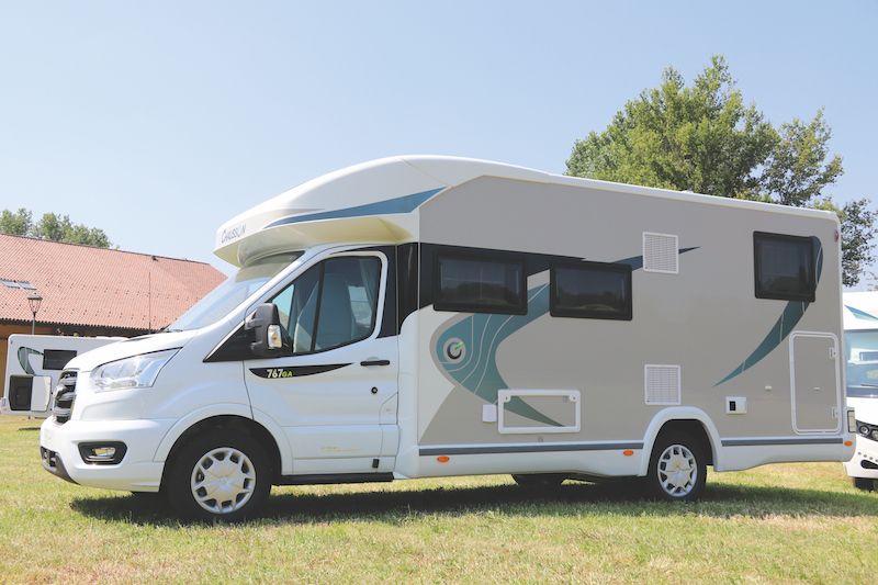 Il modello descritto in queste pagine è il 767 GA, lungo 7 metri e 19 con cucina e toilette con doccia integrata al centro e camera padronale in coda, corredata da due ampi letti gemelli larghi 90 cm trasformabili in maxi matrimoniale, che sovrastano armadi e garage.