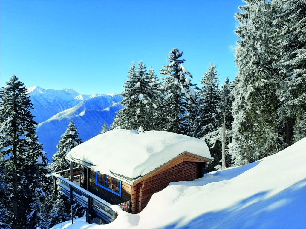 La Piana di Vigezzo è un altopiano dal grandioso respiro e facilmente accessibile grazie alla cabinovia che la collega direttamente dal fondovalle, dalla località Prestinone. L’escursione che ruota attorno a La Cima è facile, adatta a tutti e poiché è spesso battuta non sempre sono necessarie le racchette da neve, mentre i panorami che si aprono verso la Val Grande e verso la massiccio del Monte Rosa sono davvero mozzafiato. Scesi dall’ovovia (1.726 m/slm), si tiene la destra per aggirare l’edificio della stazione superiore e imboccare la traccia che in leggera discesa passa al di sotto dei cavi della cabinovia, portando di fronte alla bella chiesetta. Da qui la traccia prosegue in falsopiano verso alcune abitazioni (1.710 m/slm): una volta raggiunte, si devia a destra passando appena a monte del piccolo centro abitato e proseguendo su traccia, meno battuta ma intuitiva (cartello “M25 Colma di Fuori”). Si prosegue in maniera sempre graduale, senza bivi, con scorci panoramici a sinistra sulla Val Vigezzo e le principali cime della Val Grande, pur mantenendosi spesso tra gli alberi. Quando si raggiunge una zona aperta si arriva anche al primo bivio (1.740 m/slm): a sinistra, in basso, si vede un alpeggio ed a destra un ripido sentiero porta a La Cima, mentre il nostro percorso prosegue dritti, pianeggiante (cartello “Col - ma di Dentro”). Ma prima di proseguire è obbligatorio fermarsi e ammirare il panorama che abbraccia tra, le altre cime, anche il maestoso Massiccio del Monte Rosa. Si continua in un bosco che si fa più fitto; poco dopo questo incrocio si incontra l’unico bivio dubbio: si deve tenere la sinistra, in leggerissima discesa (poco prima piccolo cartello MTB). Si gira interamente la cresta tornando di nuovo al sole e arrivando agevolmente alle baite sparse di Colma di Dentro (1.720 m/slm). Si prosegue poi in direzione del più vicino pilone dell’impianto di risalita, dove si trovano alcuni cartelli bianco/rossi; non si prende nessuna di queste indicazioni, ma si deve imboccare la pista graduale, non segnalata, che si allontana pianeggiante. Il tracciato, più stretto e meno panoramico del prece - dente ma sempre suggestivo, si dilunga mantenendosi sempre graduale e privo di bivi, aprendo scorci questa volta in direzione della Cima Trubbio, passando al di sotto dei cavi della seggiovia che raggiunge le piste da sci di Cima 2, visibile alzando lo sguardo a destra. Quando il sentiero s’impenna brevemente, si sbuca al bordo della pista che arriva da Cima 2. Prestando attenzione, la si attraversa, tornando così alla stazione dell’ovovia