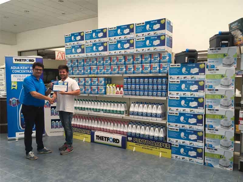 Il “Miglior Dealer Thetford 2018”, secondo la giuria composta dalla Direzione Marketing della sede centrale olandese di Thetford, è Punto Camper di Besenello (TN). “Miglior Dealer Thetford” è un riconoscimento che ogni anno Thetford assegna al rivenditore dei suoi prodotti che realizza il corner espositivo più attraente e creativo e che maggiormente ha saputo interpretare la comunicazione e la qualità Thetford. Tra decine di allestimenti eccellenti è stata fatta una prima selezione che ha portato alla nomination di 5 finalisti: Bonometti Centrocaravan di Altavilla Vicentina (VC), De Maio Camper di Veroli (FR), Jolly Caravan di Mestrino (PD), La Ternana di Terni e Punto Camper di Besenello (TN). Proprio quest’ultimo dealer ha convinto la giuria con un corner particolarmente curato e ordinato, che ha saputo interpretare al meglio lo spirito dell’iniziativa. “Anche per questa edizione 2018 di Miglior Dealer Thetford i nostri partner hanno dato il meglio nei loro allestimenti e nella promozione della qualità Thetford” – dice Fabrizio Di Piazza, sales manager di Thetford in Italia - ”Thetford vuole ringraziare tutti i propri rivenditori per aver partecipato anche quest’anno con passione e professionalità”.