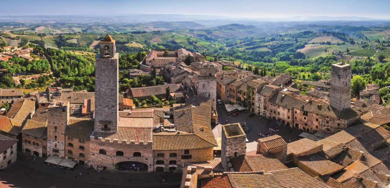 Dichiarata Patrimonio dell’Umanità dall’Unesco nel 1990, San Gimignano è una senza eguali al mondo: antico borgo medievale fortificato le cui mura risalgono all’anno Mille, famosa per il suo patrimonio storico e artistico e la sua architettura, in particolare le sue torri. Il centro storico offre capolavori medievali tra cui le famose torri che ancora svettano e che le hanno valso la definizione di “Manhattan del Medioevo”. Oggi ne restano solo sedici, tra cui la più antica, la Torre Rognosa, che tocca i 51 metri, e la più alta, Torre del Podestà, che arriva a 54 metri. Cuore della cittadina è Piazza del Duomo, ricca di edifici e palazzi come Palazzo Vecchio del Podestà, il Palazzo Comunale, chiamato anche Palazzo Nuovo, e il Palazzo della Propositura, sede dell’Archivio dell’Opera con importanti manoscritti del XV secolo. Ma non è finita qui, in quanto anche il perimetro cittadino presenta tesori storici inestimabili, ad iniziare dalle numerose chiese celebri per i tantissimi affreschi, come quelle di S. Pietro, S. Jacopo, S. Bartolo, la Collegiata di S. Maria Assunta e S. Agostino; da non mancare, infine, una visita alla rocca di Montestaffoli ed al Museo Etrusco ed a quello del Vino.