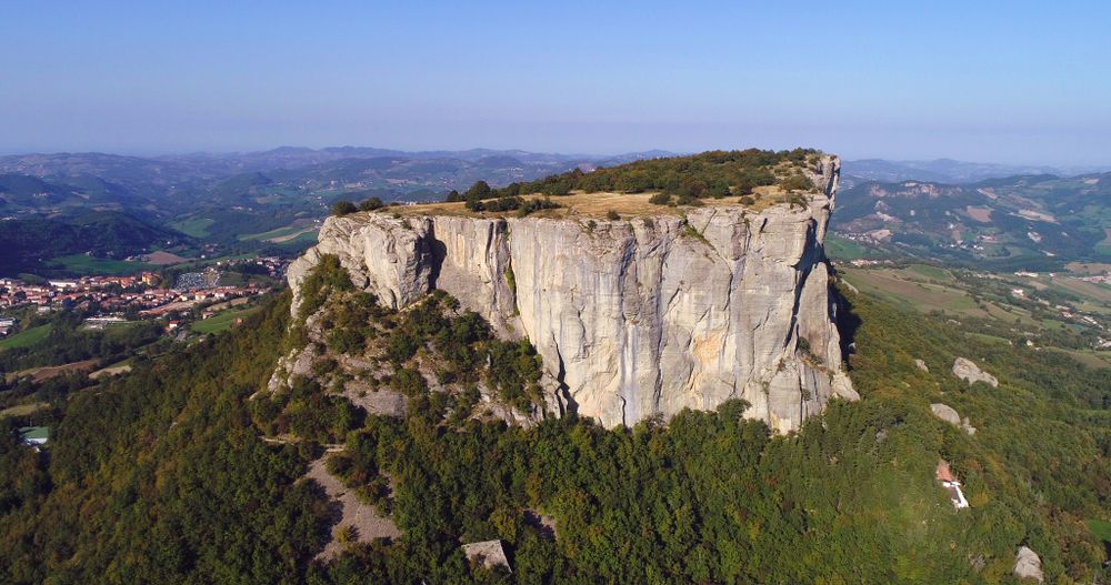 Una rocca che si innalza verso il cielo, squadrata come un castello: eppure è così facile raggiungerne la cima! Il punto di partenza è il parcheggio (a pagamento ma accessibile ai vr), che non per niente porta il nome del Sommo Poeta, posto proprio sotto la sovrastante, impressionante, parete rocciosa. Una scalinata porta in salita al tornante della strada asfaltata, nei pressi di pannelli metallici che indicano le cime visibili all’orizzonte. La strada, in salita, introduce rapidamente al suggestivo eremo di Bismantova, piccolo edificio addossato alla roccia e protetto davanti da un grandioso acero. Si prosegue poi lungo la stradina selciata a sinistra, sempre in salita e che in maniera graduale consente di aggirare la base della Pietra fino a raggiungere una suggestiva radura erbosa. Non sembra, ma ci si trova diametralmente opposti all’eremo. Si prende il sentiero a destra in salita, ne dubitavate?, che si incunea letteralmente tra la roccia, Tranquilli, nessuna difficoltà alpinistica, solo è un tratto un po’ ripido ma suggestivo che porta agevolmente all’ampio pianoro che caratterizza la sommità. Ci si trova infatti su una cima che è in realtà una sorta di tavoliere, piatto ampio e verdeggiante!