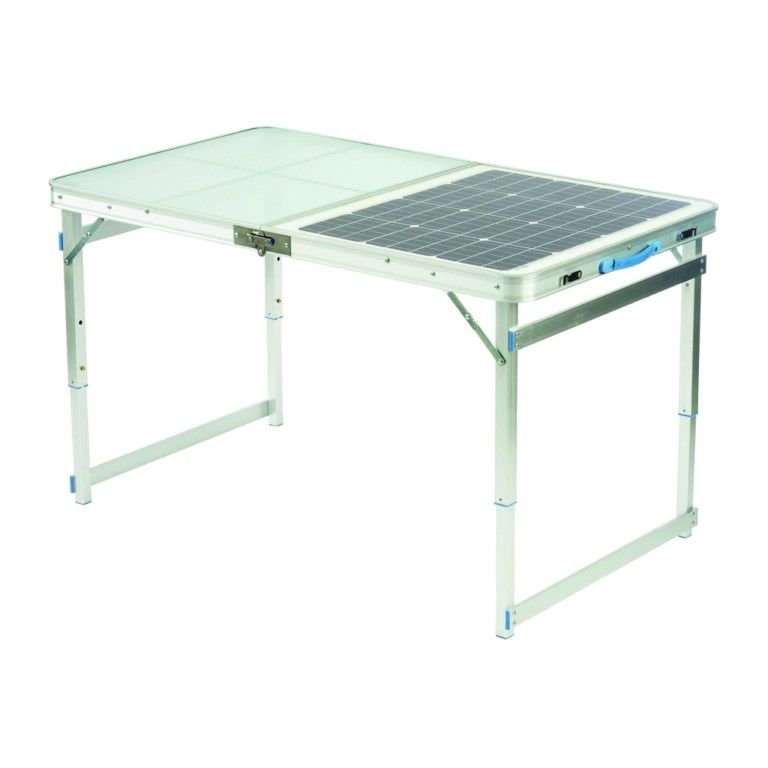 Quando è il momento di partire, si sbloccano le bretelle e si piega il leggero telaio in alluminio in un pacchetto portatile facile da trasportare e riporre. Le specifiche tecniche del Solar Table-60 rivelano un peso di 8,4 kg e dimensioni di 120x70x50-70 cm.