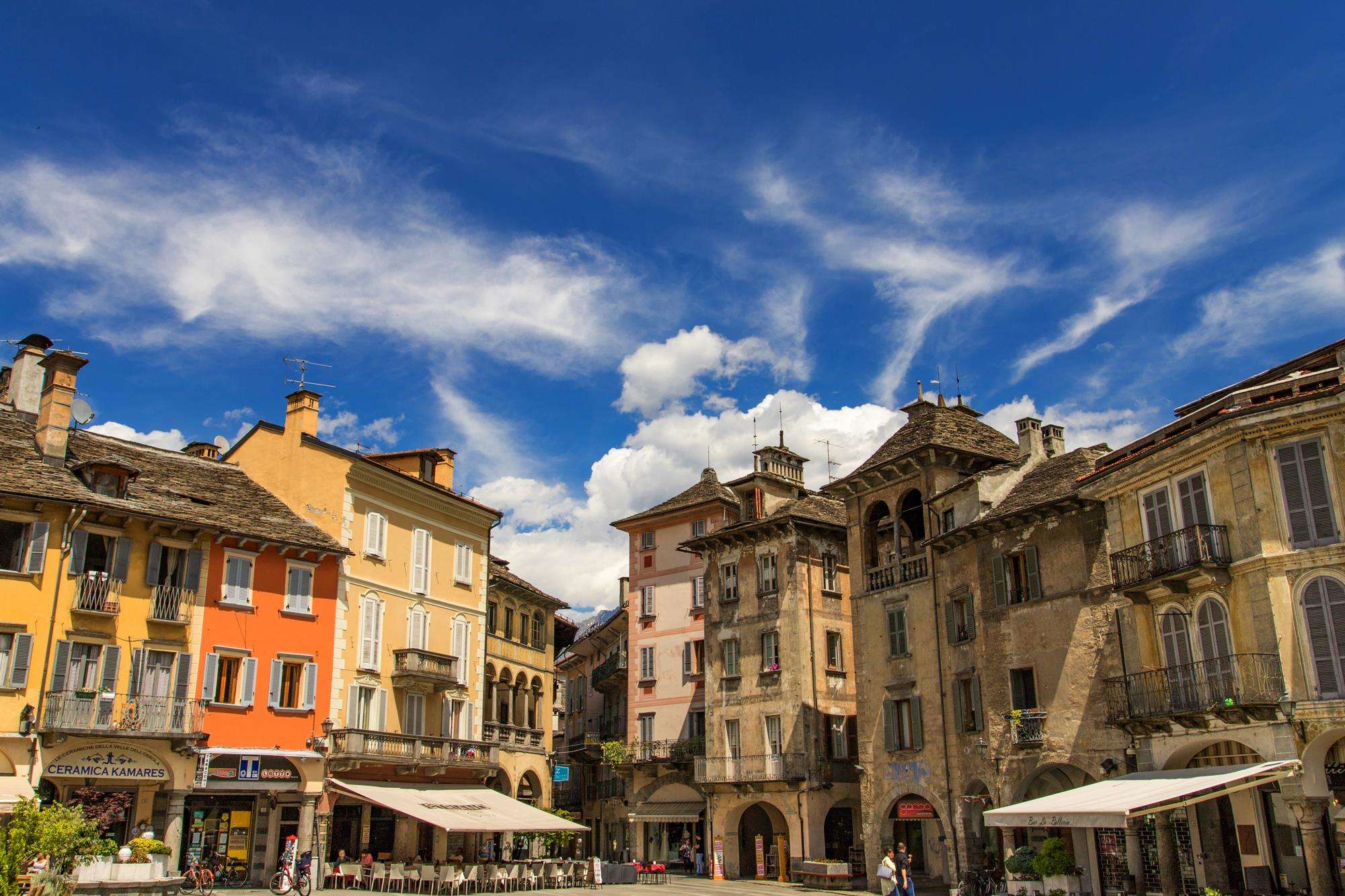 La lettera D, suono che tanto si confonde con le sue lettere vicine dell'alfabeto, vuole spesso la città di Domodossola per farsi capire. E se così deve essere, volevamo in fine vedere cosa c'è a Domodossola che la rende così unica e famosa. Già lontana capitale dei Leponzi, verso l'anno mille prese a chiamarsi Domus Oxile a causa della chiesa della Collegiata, poi in epoca romantica il nome variava in Domo d'Ossola. Punto nevralgico della valle, la città conserva un passato storico tutto visibile nel variegato centro storico, che offre sofisticati scorci architettonici come gli archi romanici e quelli gotici di piazza del Mercato, i portici quattrocenteschi, la torre del Trecento in Via Briona, dove s'intravedono anche le piccole cariatidi sopportare il peso dei davanzali. C'è poi la via Carina, con i balconi in larice delle case tipiche dove ricomincia il viaggio etnografico alla scoperta della comunità walser. Angolo pittoresco della città scrutato fra i vicoli dalla grande montagna, che guarda Domodossola, è anche piazza Fontana dove l'acqua sgorga su una vasca ottagonale sovrastata da un timido obelisco. Domodossola città antica. Sì perché gli insediamenti di Domodossola, dopo quelli preistorici, esistono anche in epoca romana quando la Via Mediolanum già attraversava questa vallata. Diversi gli edifici storici da vedere come il Palazzo Silva, il Mellerio, quello di San Francesco e Palazzo della Città, costruito a metà Ottocento.