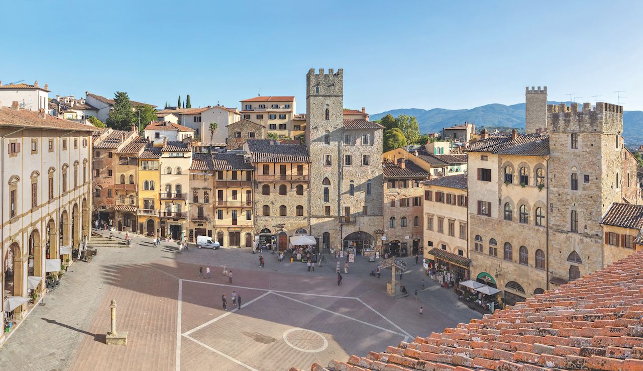 Sdraiandosi sul selciato scosceso della Piazza Grande, Arezzo offre in uno sguardo il meglio di sé: Palazzo Tofani, la Torre dei Lappoli, le Logge del Vasari, la Pieve di Santa Maria, il Palazzo della Fraternita dei Laici. Come un gioiello di pietre gli edifici mescolano l'equilibrio architettonico che oscilla attraverso il tempo, dal Medioevo al Gotico, dal Rinascimento fino al Novecento. Ecco che cercando un punto dove sostare, gli occhi vibrano davanti alla bellezza che rende alla città un posto speciale fra le altre perle toscane, Assisi e Firenze sua acerrima rivale nella battaglia di Campaldino.
