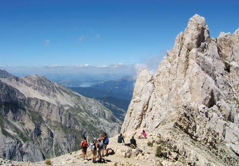 Stiamo per entrare nel territorio del Parco Nazionale del Gran Sasso e Monti della Laga, fra i rilievi dell’Appennino centrale. Lo facciamo in punta di piedi: qui sono presenti antichi borghi e vestigia del passato, ma senza dubbio la natura regna sovrana. Sbalordisce per la sua bellezza e per la sua immensità. Per le guglie granitiche che non ti aspetti, per i sovrumani silenzi, per la varietà dei paesaggi, per il brillìo delle stelle la notte. Istituito nel 1991, il Parco è uno dei più grandi d’Italia per estensione: coinvolge tre regioni (Abruzzo, Lazio, Marche), cinque province e numerosissimi comuni. Tre sono i gruppi montuosi racchiusi nel suo territorio: la catena del Gran Sasso d’Italia, il massiccio della Laga e i Monti Gemelli. Si caratterizza per la presenza della vetta più alta di tutto l’Appennino, il Corno Grande del Gran Sasso, che raggiunge i 2.912 metri di altezza. Il Parco è percorso da una fitta rete di sentieri escursionistici da percorrere a piedi, in mountain bike, a cavallo. Per cui, prima di partire, si consiglia di documentarsi e di acquisire il materiale necessario per pianificare la scelta degli itinerari da effettuare una volta giunti sul posto. Il sito ufficiale www.gransassolagapark.it offre abbondanza di guide e carte.